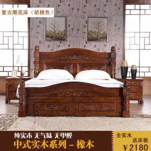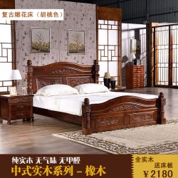 全实木床 橡木现代中式高箱床1.51.8 双人床 胡桃海棠色简约婚床