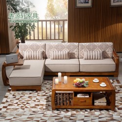 【粤源轩】粤源轩实木沙发 组合 新中式客厅实木布艺沙发 转角木沙发F102