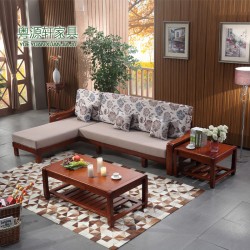 【粤源轩】粤源轩实木沙发 组合 新中式客厅实木布艺沙发 转角木沙发批发