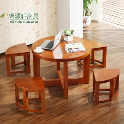 橡胶木茶几原木多功能茶几桌功夫茶桌椅组合创意家具圆桌J25