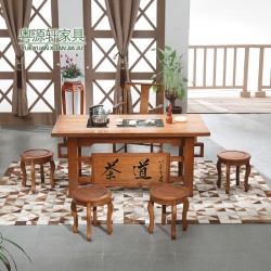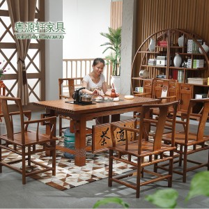 粤源轩 实木家具 实木茶桌 进口白蜡木 中式茶桌椅组合 J17