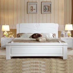 【林德佳】实木床白色双人床橡木1.8米2米大床现代中式烤漆特价简约卧室家具 |