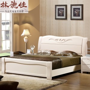 【林德佳】橡木全实木床1.8米简易床双人白色储物床成人纯实木特价套房婚床