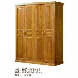 【舒康缘】顺德家具批发水曲柳木衣柜 实木四门推拉门储物柜 大容量302