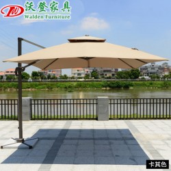 【名称】2.5米方形 / 3米方形 双顶户外罗马伞【品牌】沃登家具【型号】JMS-131【公司】佛山沃登家具有限公司【材质】铝合金+低碳钢+台湾布【产地】中国·广东·佛山【颜色】酒红色 / 墨绿色 / 卡其色 / 米白色【防水级别】100%防水 · 800(PA)水压【生产周期】现货产品3-7天发货(断货除外)【布料色牢度】美标6级,正常使用1~2年不褪色【产品规格】2.5米方形 / 3米方形【产品尺寸】2.5米方形罗马伞尺寸:伞面 2.5米*2.5米方形 / 高度2.5米3米方形罗马伞尺寸:伞面 3米*3米方形 / 高度2.65米【产品材质】1.伞骨:伞骨支架结构采用了优质高强度低碳钢打造,伸展性能好,抗风能力超强,坚硬而不易折断或挤压造成变形,静电喷涂表面,经得起风吹日晒,颜色牢固度很强。2.立杆:立杆采用了优质高强度铝合金打造,韧性和强度很高,结构稳固。静电喷涂表面,经得起风吹日晒,颜色牢固度很强。金美斯遮阳伞的立杆铝合金尺寸和铝管的厚度高于市场上普通产品。3.伞布:采用遮阳伞台湾进口专用伞布,增强型密度,防水、遮阳和抗紫外线的性能绝佳【底座说明】配置60KG大罗马伞专用大理石底座 。 其它重量和形状的大理石底座或水箱底座需要另外购买,请以咨询客服为准。【加印logo】伞面可丝印公司logo及图案,印刷逼真清晰,永不褪色,是优秀的企业户外广告载体。印制logo需要另外购买该服务,价格请以咨询客服为准。【遥控灯】产品报价不含遥控灯和太阳能灯,需要另外购买,价格以咨询客服为准。【产品用途】酒店宾馆、商业广场、渡假村、别墅庭院、泳池边、网球场、商业休闲场所、空中花园、旅游景点等各类场所【包装细节】1:天地盖纸箱,高强度.里面配件有旋转底盘用泡沫箱包装,十字架与小配件分开包装. 2:有安装图,安装简单"