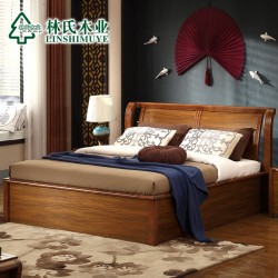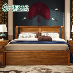 林氏木业实木床1.5 1.8米双人床 中式床储物高箱气动床家具LS8004