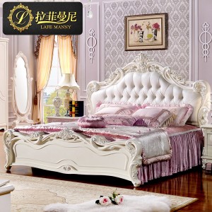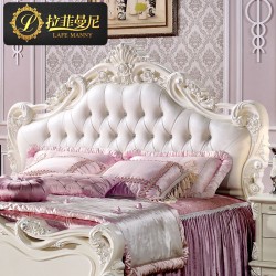拉菲曼尼家具 欧式床 双人床 法式床 橡木实木床 真皮田园公主床