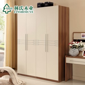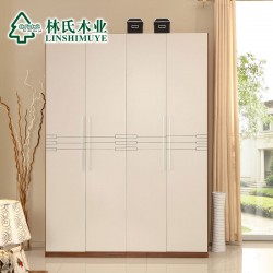 林氏木业板式四门衣柜 立柜现代简约卧室开门1.6米大衣橱家具QD02