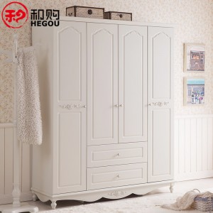 和购家具 卧室大衣柜白色木质衣柜田园衣柜四门儿童衣柜实木HG082
