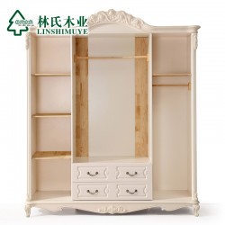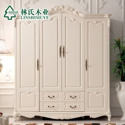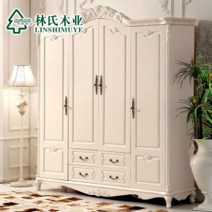 林氏木业法式田园韩式四门木质衣柜白色欧式整体大衣橱家具KD620