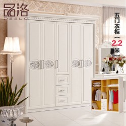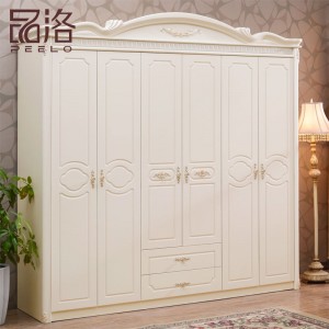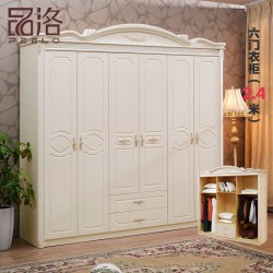 欧式衣柜6六门大衣柜实木质卧室家具象牙白色田园组合推拉门衣橱