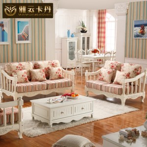 雅云卡丹 地中海韩式田园沙发 小户型客厅实木欧式布艺沙发组合
